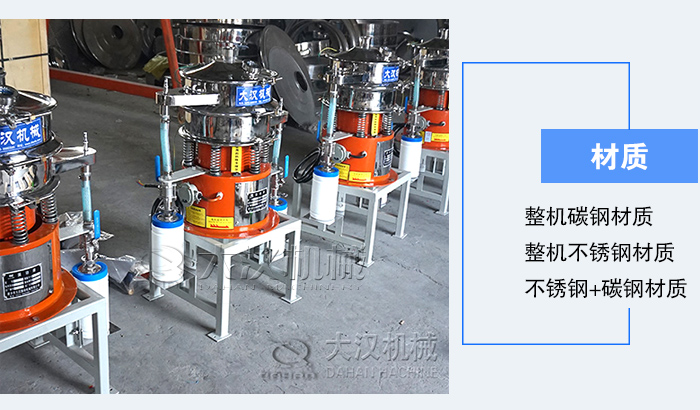 因?yàn)闅怏w保護(hù)振動篩要篩分的物料多為化學(xué)用品,含有一定的腐蝕性,所以大漢機(jī)械更推薦您使用不休材質(zhì)氣體保護(hù)振動篩對其進(jìn)行篩分。
