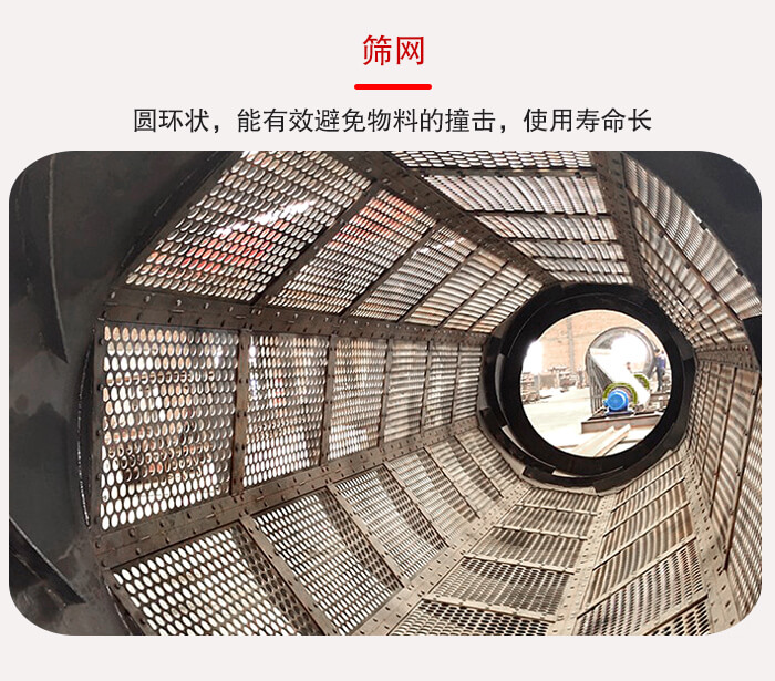 3,GTS滾筒篩篩網(wǎng)是圓環(huán)狀,能有效避免物料的撞擊,使用壽命長(zhǎng)。