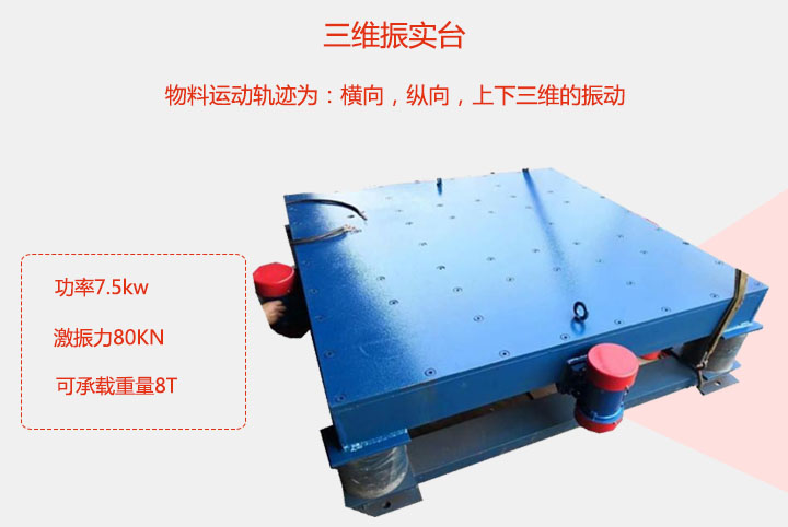 三維振實臺常用于混凝土,預(yù)制件試塊,樹脂砂,消失模的造型,可通過調(diào)節(jié)電機(jī)激振力大小使平臺上物料實現(xiàn)理想的形式。