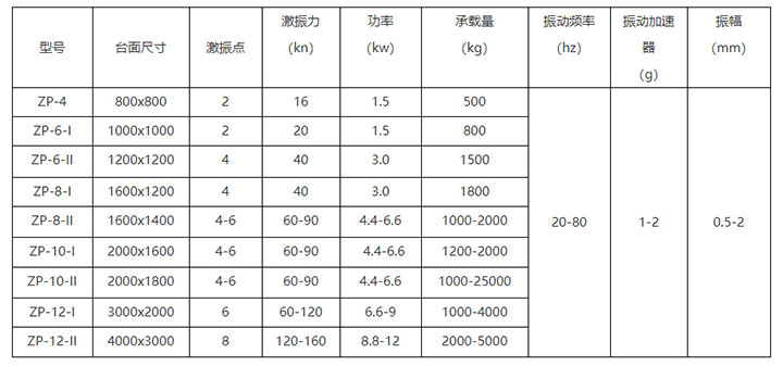 該設(shè)備就是利用振動臺底部的振動電機(jī)的振動,帶動振動臺與物料的振動,利用電機(jī)的安裝位置的不同,實現(xiàn)不同軌跡的振動力作用,從而完成對物料的緊實的目的。