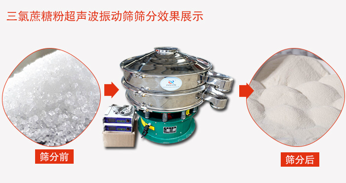 三氯蔗糖粉超聲波振動(dòng)篩:由于三氯蔗糖粉屬于食品類的一種并且伴有一定的糖粉所以,應(yīng)該選擇不銹鋼材質(zhì)的超聲波振動(dòng)篩進(jìn)行篩分。